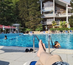 Скажу, так... С ребёнком очень зачётно. Питание хорошее, бассейн и взрослый и детский с подогревом. Пляж рядом, лежаки, зонтики беседки, туалет, бар. По утрам зарядка, танцы. Можно заказать трансфер.