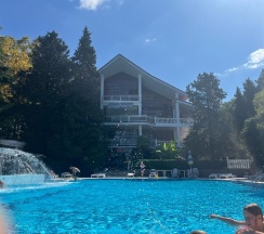 отличная гостиница всем советую там побывать! Завтраки включены как обед и ужин,отличное питание,море не далеко от гостиницы.У кино-бара есть бассейн и время увлечение для детей много