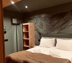 Были здесь в марте. Большой плюс что парковка авто возле номеров. Классный номер, тёплый, белье чистейшее,ванная комната с каменной раковиной👍В кафе достаточно вкусно, прикольный пирог с брусникой.Единственное что цены конечно высокие на проживание. А так нам все в целом понравилось. И рядом прекрасный Байкал🌊