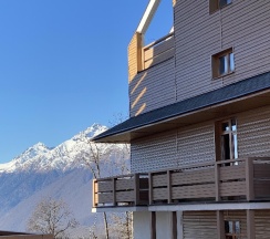 Отдыхали четыре дня летом, очень понравилось! Красивая олимпийская деревня, в стиле альпийских шале. В гостинице на ресепшн очень радушные молодые ребята, всё объяснили, со всем помогли - с оформлением билетов на канатную дорогу, с парковкой и любыми вопросами, все решения на месте. Работают 24 часа. Завтраки - пушка! С безлимитными горячими и холодными напитками. В номерах: халаты и мягкие тапочки, классное постельное белье и матрасы, новая мебель, меню подушек (самая лучшая - анатомическая!), по 3 полотенца на каждого гостя, есть сушилка для белья, чайная станция с хорошим выбором чаев и сахаром, 2 бутылочки воды в день. Подъемник рядом, катались и на Роза пик, и вниз в Эстосадок.