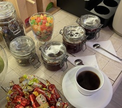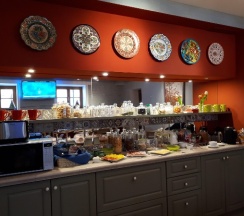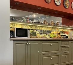 Замечательная столовая зона - можно воспользоваться посудой, в любое время дня и ночи попить чай с печеньем.