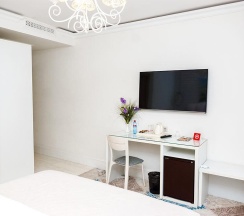 Номера категории "Супериор" с одной большой кроватью или двумя раздельными, площадью 25кв. метров восхищают авторским дизайном, все номера разные по интерьеру как в самом номере так и в ванной комнате. Гостей ждет скромный и не навязчивый интерьер, картины ручной работы, уникальный дизайн итальянской сантехники, классические хрустальные люстра, современная техника, рабочий стол, бесплатный Интернет. Ванная комната декорированная зеркалами, английской плиткой, оснащена отдельной душевой кабиной. В распоряжении гостей мягкие халаты, тапочки, а так же фирменные косметические принадлежности