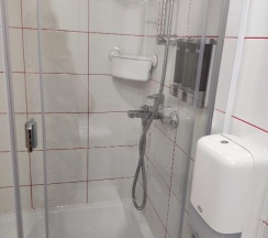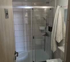 В душевой была грязь на дверце и сам душ не совсем удобный, слишком узко