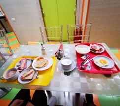 Замечательная гостиница рядом с метро, в пешей доступности от Кремля, трех ж/д вокзалов, и по цене чуть дороже хостела. Ещё и с вкусными завтраками, где можно выбрать себе блюда. Нам достался большой номер с видом на улицу, очень уютный. На ночь от шума улицы можно закрыть окно, есть кондиционер. В номере есть холодильник, микроволновка,телевизор, кондиционер, чайник, посуда, печеньки. Гладильная доска на этаже, кулер с водой. Туалеты на этаже, есть мыло/шампунь/гель в душевой. Постоянно убираются, везде очень чисто. Приветливый персонал, девушки в столовой поднимают настроение с утра своими улыбками :)