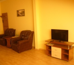 Большой телевизор, в холле есть кулер и микроволновака. Питания в отеле нет, НО зато есть рядом современная столовая Базилик, там очень вкусно и недорого)