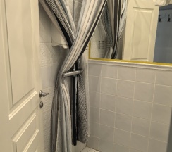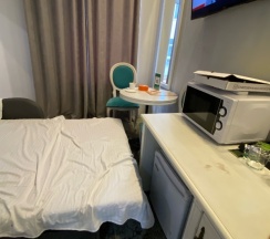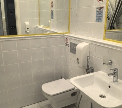 После в ноябре мы с подругой прилетали на сутки и также остановились в этом месте. Номер достался на другом этаже , меньше размером намного, но нам это было не принципиально. Душевая конечно в этом номере была крошечная, но чистая. Там на этаже стоял и кулер и гладильная доска. (Вдруг кому-то это важно )