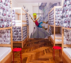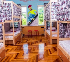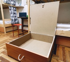 Верхняя кровать в общем номере для мужчин и женщин оснащена удобным, ортопедическим матрасом, персональной розеткой, большим, запирающимся на ключ, выдвижным ящиком для вещей, индивидуальной полкой, сушилкой для белья, вешалками для верхней одежды и занавесками, создающими приватность. Заезд возможен с 14-00 до 23-00. Взимается курортный сбор.
