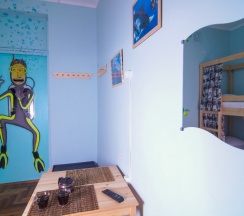 Семейный номер позволяет разместить до 4-х гостей. В номере одна двухъярусная кровать и две одноместные кровати. Семейные номера оснащены телевизором с плоским экраном, холодильником, столом, стульями, вешалками для верхней одежды и сушилкой. Под каждой кроватью есть индивидуальный, запирающийся на ключ, ящик для вещей. Free WiFi. Заезд возможен с 14-00 до 23-00.