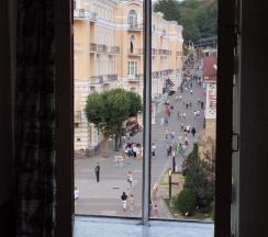 Одна половина хостела выходит окнами на Курортный бульвар, из шума там в основном музыка (что может быть, в принципе, даже приятным бесплатным дополнением), но в ночные часы режим тишины соблюдается. Другая половина смотрит во двор, летом там разные детские увеселения, но я не отметил какого-то особого надоедливого шума. Ночью там тоже тихо. Гостям шагово доступны все объекты Курортного бульвара, прилежащих улиц (недалеко, к примеру, центральный рынок с прекрасными сырным, колбасным и хлебным рядами), сразу за Нарзанной галереей начинается бесконечный кисловодский парк.
