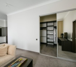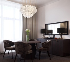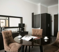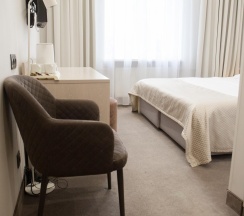 Номер категории «Люкс» – это стильный и современный номер, повышенной комфортности площадью 60 кв.м., идеальное решение для ценителей максимального комфорта. Номер удобно разделен на полноценную спальную зону, гостиную и гардеробную. Идеально подойдет для командировки, деловой поездки и романтического свидания. Просторный номер оценят любители личного пространства. Номер предназначен для размещения 1-2 гостей.
