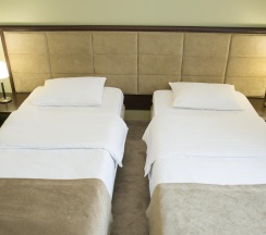 К размещению доступны номера категорий Эконом, Стандарт, Комфорт и Люкс. В каждом номере есть все необходимое для комфортного проживания: удобная кровать, холодильник, телевизор с кабельными каналами, сейф, чайная станция, рабочая зона, собственная ванная комната с феном, набором полотенец и косметическими принадлежностями. На всей территории для гостей доступен Wi-Fi.
