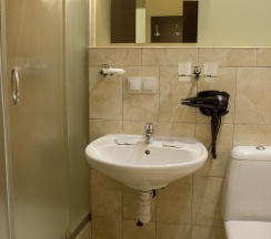 Утром горячая вода в номере пропадала минут на 10, видимо большая нагрузка на стояк, когда все идут утром умываться. Поэтому либо домываться в душе холодной водой, либо стоять с пеной, как инженер Брунс, и ждать струйку теплой.