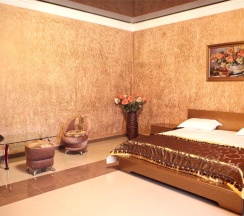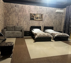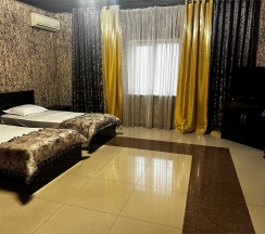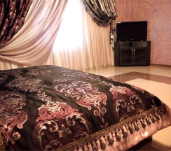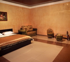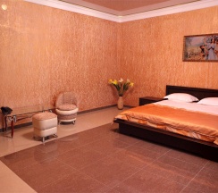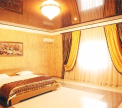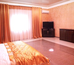 Комфортные, современные номера оснащены телевизором с плоским экраном и кабельными каналами, предметами мебели (кровать, журнальный столик, пуфики ,шкаф купе ), ванной комнатой (предоставляются бесплатные туалетно-косметические принадлежности). Бесплатный Wi-Fi на всей территории .Охраняемая парковка.