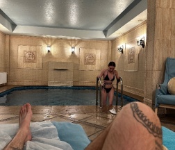В отеле есть сауна с достаточно не маленьким бассейном, как нибудь и там отдохнём )
