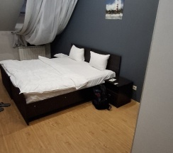 Были проездом в городе. Сначала набрали номер телефона одного отеля, но в три часа ночи места были заняты (оно и понятно) Девушка оператор предупредила что перезвонят из другого отеля где есть номера. Итак, нам перезвонили и мы быстро добрались. Девушка на ресепшн(очень приветливая и милая) сказала что есть номера на выбор. Стандарт, люкс 3500₽ , люкс +(или что там) 4500₽. Выбрали просто люкс. Номер рядом с ресепшен (под дверью щель, звукоизоляция не очень, слышно всех соседей) Сразу на ресепшн подключили WF. Номер просторный(на фото видно). Вид на реку(красиво) Для гостей есть 2 комплекта полотенец+для ног(типа коврик в ванную), тапочки, зубная щетка +паста, гель, шампунь. В номере есть чайник, чашки, чай, сахар, НО НЕТ ПИТЬЕВОЙ ВОДЫ(у нас была своя т.к. ехали из далека). TV, сейф, холодильник(если кому то важно) Забыла «кубик» для зарядки, провод подключила к какой то штуке возле TV и все сработало(за ночь зарядила часы). Утром номер при выезде никто ни проверил, увидели что кто-то так же как и мы выезжал и просто оставили ключи на стойке ресепшн(т.к. никого не было сделали так же). Мы не особо притязательны, да раковина в ванной с большой трещиной, на наволочках присутствуют "катышки", кровать скрипит(но кто обращает на такие мелочи внимание😊)