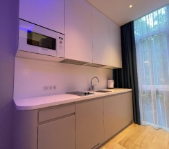 Супер отель, в современном стиле, чисто, номера комфортные, есть мини кухня, все супер! При отеле есть столовая, ну оооченнь вкусно, питались только в столовой, все свежее, очень много зелени, персонал вежливый, отзывчивый.