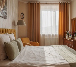 Этот уютный номер идеально подходит для проживания взрослого и ребенка. Но также подходит и для проживания двух взрослых гостей, если Вам комфортно будет отдыхать на полутороспальной кровати. В интерьере сочетаются современные элементы и теплые оттенки, создающие атмосферу комфорта и уюта, а дополнительные текстильные детали, такие как мягкие подушки и пледы, добавят нотку домашнего тепла.