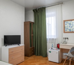 Номер оборудован всем необходимым: удобным рабочим местом, телевизором и Wi-Fi для вашего комфорта. Именно здесь вы сможете расслабиться после насыщенного дня.
