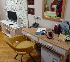 Неплохая гостиница, удобно что в самом центре, есть где рядом и покушать и погулять. Внутри чисто и аккуратно. Немного подустали двери и туалет немного бывалый и продавленный матрас. А так очень даже комфортно.