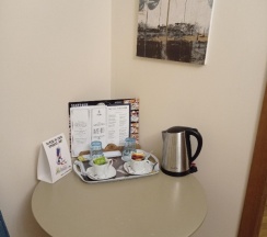 - вроде бы внизу на решепшене есть бесплатный кофе, но спускаться вниз каждое утро с пакетом круассаном или вафлями было лениво, тем более что в номере есть чайник. Но вот кофе/чай в номере 4 пакетика, которые за 2 недели не пополняли.