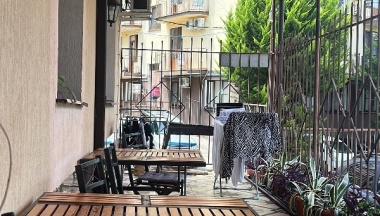Отдельное достоинство — широкая кровать с качественным бельём и полноценный санузел с горячей водой без перебоев. Есть кондиционер и быстрый интернет, что делает проживание комфортным и для отдыха, и для работы. Балкон открывает приятный вид на зелень и горные склоны, особенно красивый в вечернее время.
