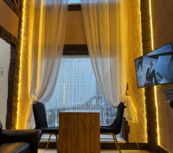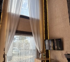 Не понравилось: Нет фена, чайника, ковра, пульта от тв. Это чисто кто хочет приехать и пить. Жить не комфортно. В кровать светит фонарь от стройки. Пешком отойти куда-то невозможно, тротуара нет. В номере даже кровать трясется от проезжающих машин. Дырки в стенах не заделаны, картины висят такие, что мне стало нехорошо. Вообще, в доме не очень уютно. Приезжают неадекваты с музыкой в машине на всю округу. Все владение это кусок земли с домиками, поставленными друг за другом. Пока больше ничего там нет. Перила в доме шатаются. Ощущения московско-китайской области, никак не Ленинградской. Отель в Спб предоставляют намного больше удобств за половину стоимости. Нет никакого комплимента. В Карелии, например, сдаются домики, там есть абсолютно все, даже крем, и бутылка отличного вина в подарок.....