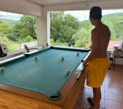 Очень хорошее место для отдыха, все понравилось. Бассейн большой, баня обширная с зоной для отдыха, Сама вилла большая есть зона биллиарда и пинг-понга
