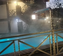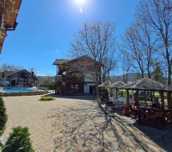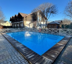 Отличное место, красивая территория особенно в ночное время! Очень хорошая территория, чистые и комфортные номера, обалденное кафе! Есть бильярд, плэйстэйшен, сауна, мангальная зона. Очень удобное расположение - самый центр поселка, все в шаговой доступности. Отдельного внимания заслуживает бассейн с подогревом, в котором и гидропушка и гидромассаж... Адекватные цены, приветливый персонал. Минус только один - в номере были жуки, но тут ничего не поделаешь, они с улицы на тепло лезли.