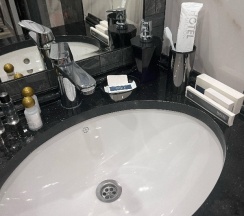 Хороший ремонт, на окнах матовая защитная плёнка, отличная ванная комната в каждом номере. Есть вай-фай, настраиваемый ПОДОГРЕВ ПОЛА. Каждый день меняют полотенца, убираются. В номере также есть бутилированная питьевая вода. В любое время дня и ночи можно выпить чашечку (а то и несколько!) кофе или чая. В общем, рекомендую!