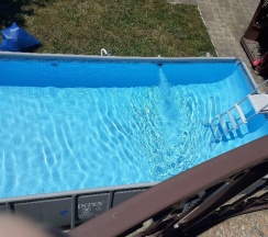Там же бассейн с чистой водой и шезлонги. Тренажеры, батут для детей и качели. Нам понравились беседки в зелени где можно покушать на природе.