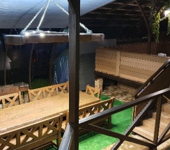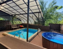 Отличная баня, дворик бассейн, в парилке музыка и гармоничная подсветка, так же бассейн и горячая бочка купель, массажное кресло, ну очень понравилось, так же на столе стоял чайник чая и вареник из фейхоа
