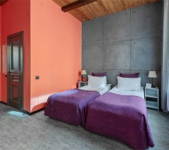 В номере размещены две односпальные кровати и дополнительное место, или одна двуспальная и дополнительное место.