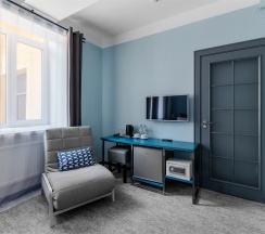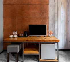 Номер оснащен современным LCD-телевизором, кондиционером, сейфом для ценных вещей, электронными замками, мини-холодильником и чайной станцией, чтобы вы могли наслаждаться любимым горячим напитком в любое время, сидя в уютном дизайнерском кресле. А умная колонка, установленная в номере, включит любимую музыку, расскажет о погоде и расскажет об отеле.
