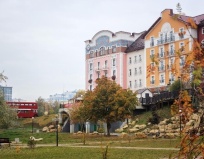 К отелю примыкают два ресторана — «Лыбедь» и «Бристоль». В обоих отличная кухня и приветливый персонал. В «Лыбеди» обедал — всё очень вкусно. А в «Бристоле» был замечательный английский завтрак: шакшука с помидорами, сырники, капучино, чай — всё на уровне.