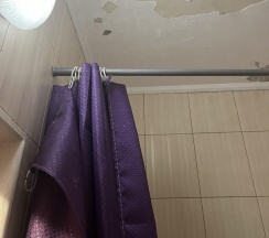 - крепление для душа сломано, от окон дует сильно. Задвижка на двери ванной не работает.