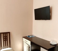 Очень понравилось всё Сотрудницы были вежливые Всё показали ,объяснили В номерах было чисто и уютно Удобная очень кровать Выспалась хорошо Есть телевизор,только виснет из-за интернета Кондиционер, Wi-Fi,холодильник всё есть Так же предоставляют чай, кофе, завтрак и вода в кулере Даже есть книги ,можно почитать и время убить 😌Советую бронировать за ранее Номеров свободных мало