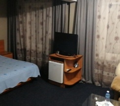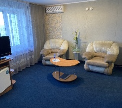 Остановились в полулюксе, чисто и уютно! Большая двухспальная кровать и комфортный угловой диван, мебель в отличном состоянии. В номере сть халат, тапочки, фен, уходовые средства, кондиционер и холодильник. Вежливый и обходительный персонал. Номер просторный и светлый за счет двух окон. Большая парковка. Тихо и спокойно👍. Отлично отдохнули перед поездкой. Цена соответствует качеству услуг!