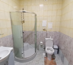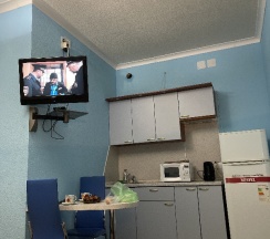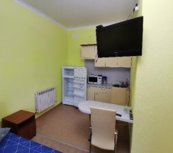 Проживала в гостинице 2 ночи. Для жизни всё есть. Небольшая кухонная зона (микроволновка, чайник, холодильник, тарелки, кружки, ложки, вилки) , столик. Всё удобно. В туалетной комнате есть фен (что для женщин немаловажно). Там тоже все удобно , единственное что мне не хватало так это какой нибудь полочки в самой душевой , чтобы можно было положить моющие принадлежности. Я проживала в номере на два человека, но с одноместным заселением, заплатила 3400 руб. (с 20 по 22). За тот комфорт который мне был предоставлен считаю соразмеримая плата. Спасибо за уют, спокойствие и доброжелательность