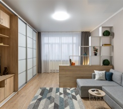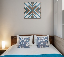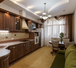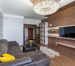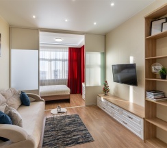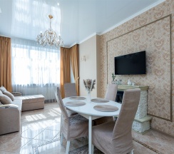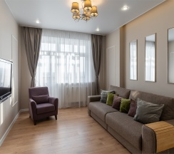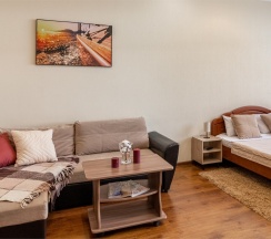 - 6 (2+2+2) комфортных спальных места. В комнатах двуспальные кровати, в гостиной двуспальный раскладной диван.