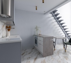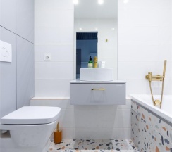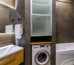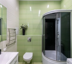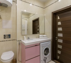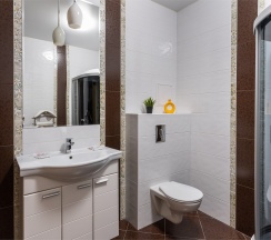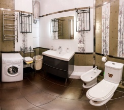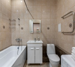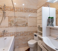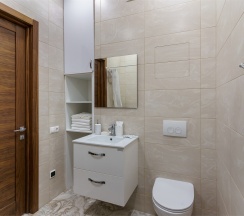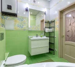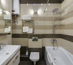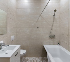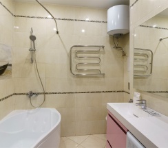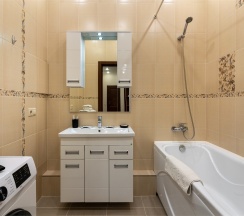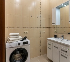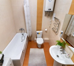 Сам апартамент немного потасканный. Например, в ванной за переключение на душ отвечает заржавевший "гвоздик". Но в остальном вполне уютно.