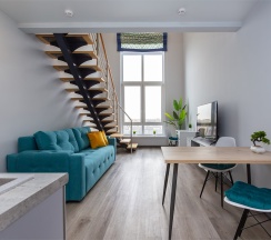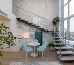 Классные аппараты прямо в центре. Люкс-студию на 20 этаже. не советую - уже весьма уставшая она, а вот апарт на 11 это просто улёт! Рекомендую!