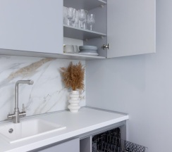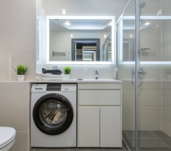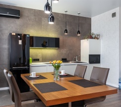 - Для комфортного проживания есть вся бытовая техника: электроплита, электрический чайник, микроволновая печь, духовой шкаф, посудомоечная машина. Имеется вся необходимая посуда. Имеется водонагреватель на случай отключения горячей воды. Кондиционер.