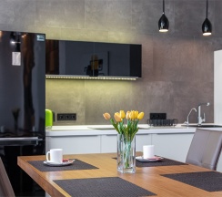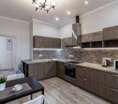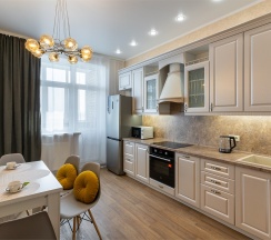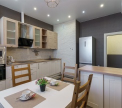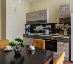 Для комфортного проживания есть вся бытовая техника: электроплита, электрический чайник, микроволновая печь, духовой шкаф, посудомоечная машина. Имеется вся необходимая посуда. Имеется водонагреватель на случай отключения горячей воды. Кондиционер.