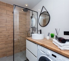 - Гель для душа, шампунь, мыло, туалетная бумага, освежитель воздуха, средства по уходу за обувью, стиральный порошок, капсулы для посудомоечной машины, губка и средство для посуды (включено в стоимость).