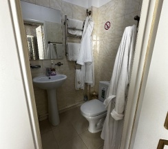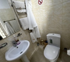 Брали двухэтажный номер 24кв.м, самый большой минус это звукоизоляция. На втором этаже спать невозможно, там в гипсокартонной стене проходит канализационная труба. На первом лучше, но звуки то от канализации, то от входной двери все слышно. Поэтому пораньше спать не получится, только после 23.00 когда все улягутся спать.