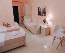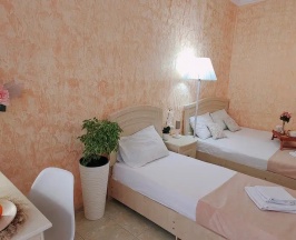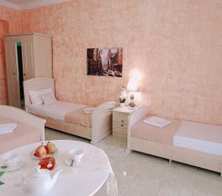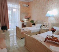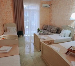 Светлый, уютный однокомнатный номер с балконом и собственной ванной комнатой. Номер оборудован: кровать размера queen-size, две односпальные кровати, мини-холодильник, телевизор, wi-fi, шкаф и туалетный столик.