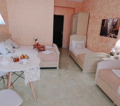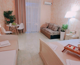 Светлый, уютный однокомнатный номер с балконом и собственной ванной комнатой. Номер оборудован: кровать размера queen-size, одна односпальная кровать и диван, мини-холодильник, телевизор, wi-fi, шкаф и туалетный столик. Балкончик.