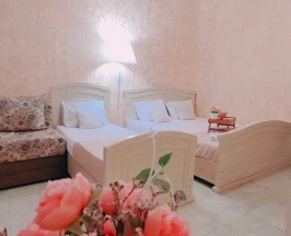 Однокомнатный номер с возможностью комфортного размещения до 5 человек. Номер оборудован: кровать размера queen-size, три односпальные кровати, мини-холодильник, телевизор, wi-fi, шкаф и туалетный столик. Комфортную температуру обеспечивает сплит система кондиционирования.