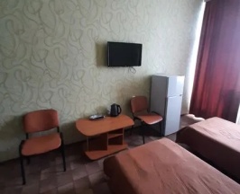 Всё хорошо. Чистенько в номерах, бельё чистенькое белое, телевизор, чайник, шкафчик, холодильник. Санузел и душевая. Ну, здание старое, но на чистоту в номере не влияет. В кафе покормили, хоть и было очень поздно. Ранее были летом, народ было много, но с оформлением тоже проблем не возникало.