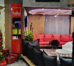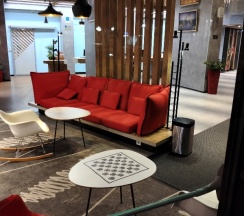 Комплиментарные напитки и карты города,бесплатная камера хранения багажа,улыбки и хорошее настроение сотрудников ресепшен.